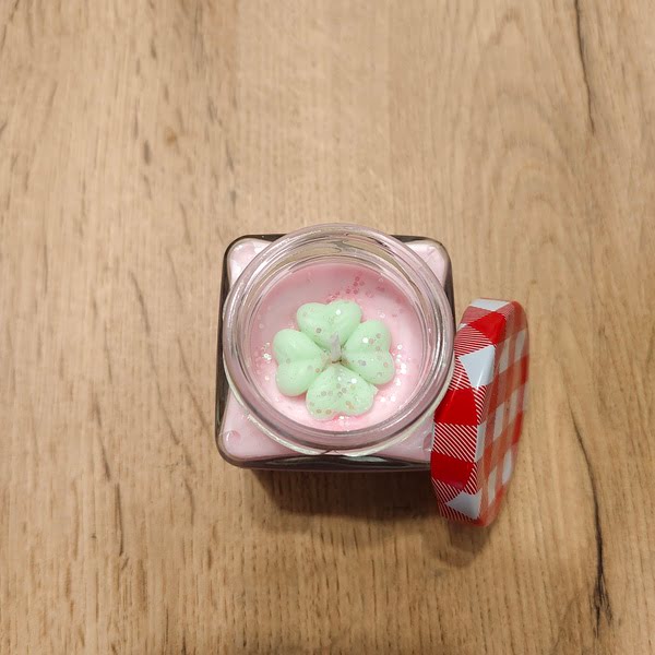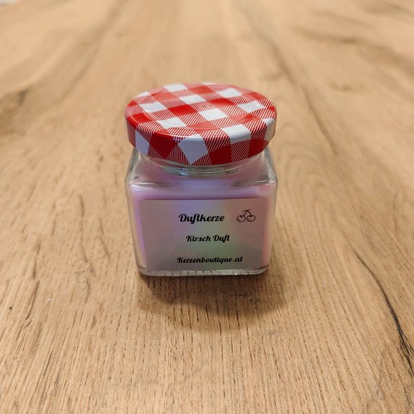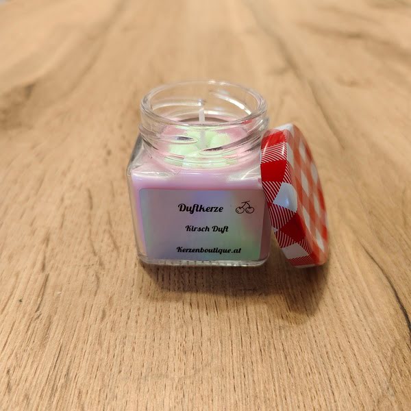 Mini-Duftkerze „Kirsche“ – Handgemacht aus Bio-Sojawachs mit Kleeblatt-Verzierung